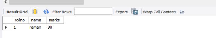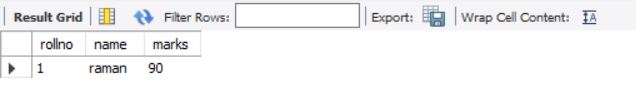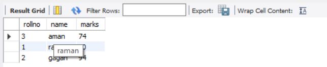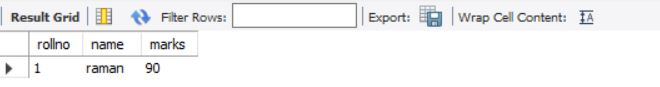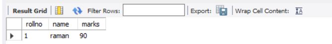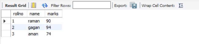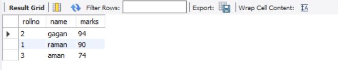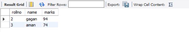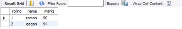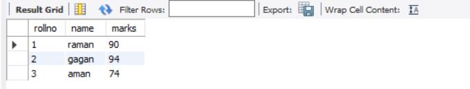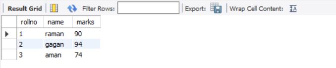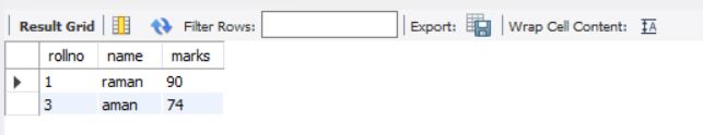 above query will display data for columns rollno and marks from stable students