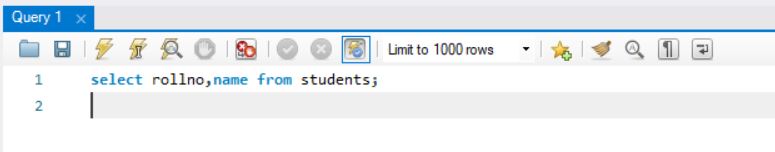 the above command will display columns rollno and name from table students