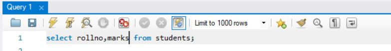 select rollno,marks from students;
