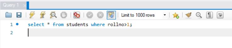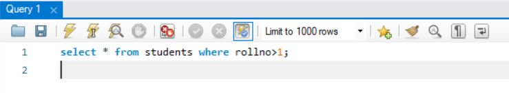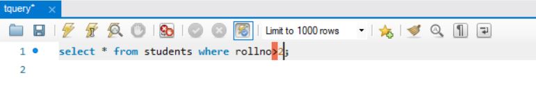 the above query will display records from table students where rollno is greater than 1