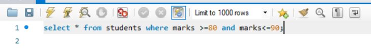 select * from students where marks>=80 and marks<=90;