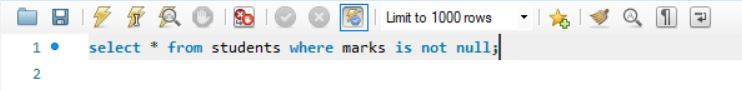 select * from students where marks is not null;