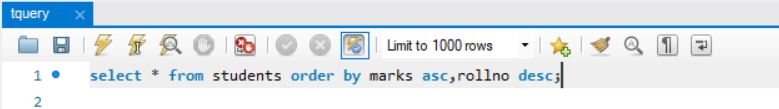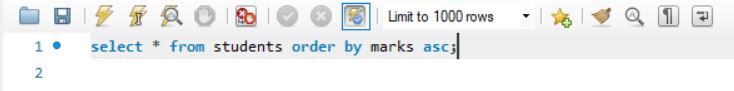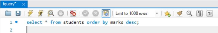 select * from students order by marks desc;