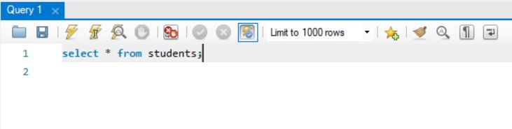 the above command will retrieve whole data from mysql table students