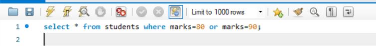 select * from students where marks=80 or marks=90;