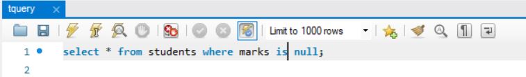 select * from students where marks is null;