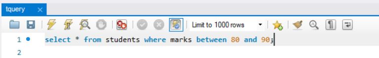 the above sql query will display records where marks are between 80 and 90